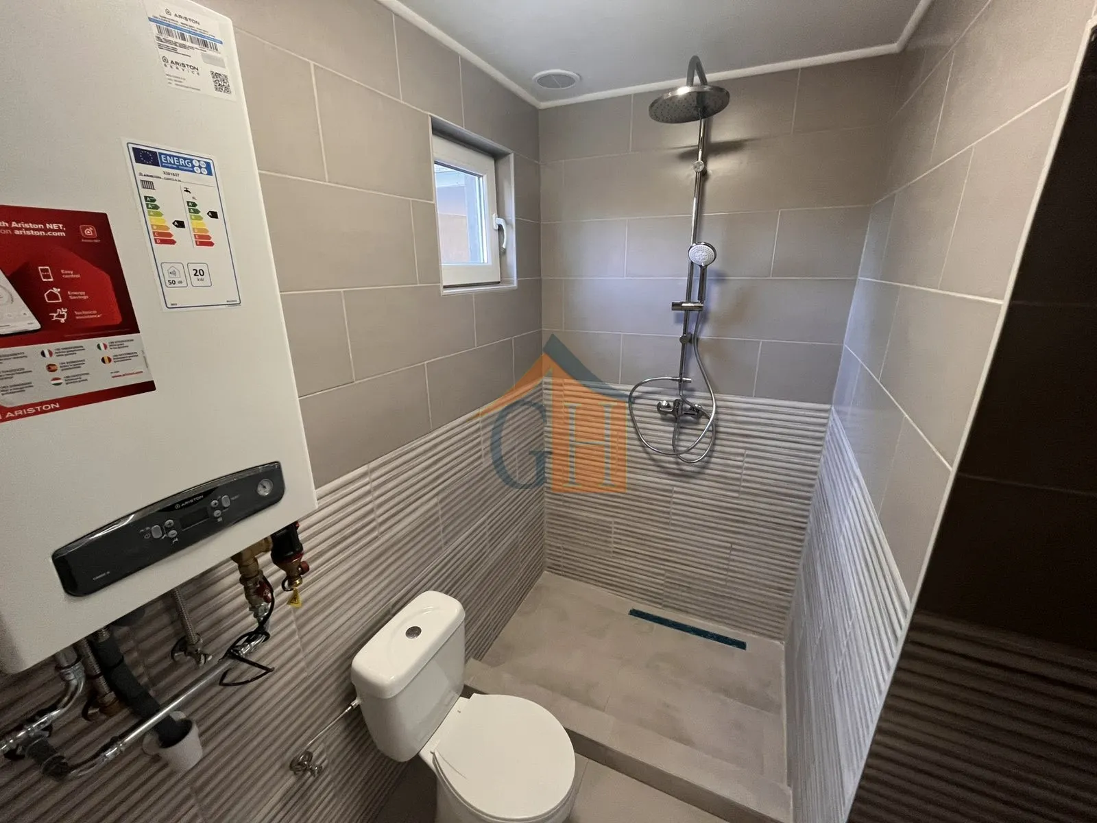 A központi fűtésről vegyestüzelésű kazán gondoskodik, de két klíma is besegít a fűtésben és hűtésben.